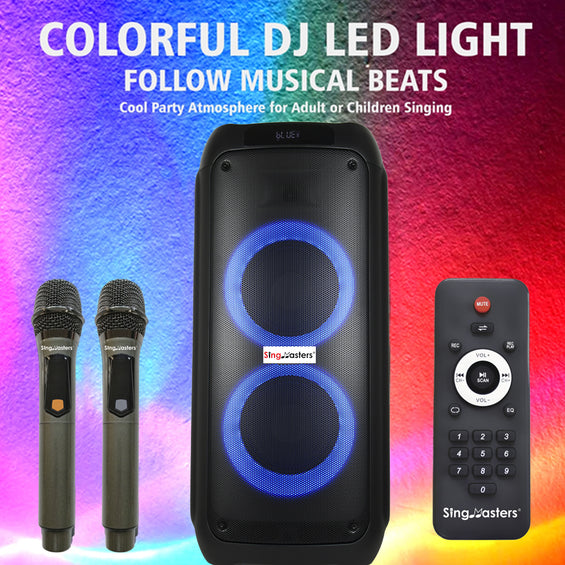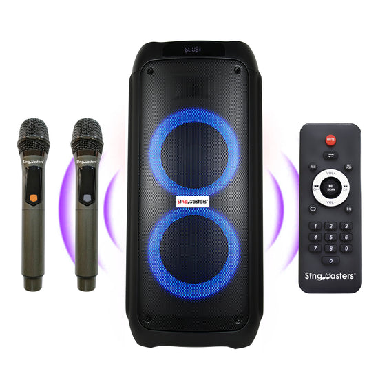 SingMasters PartyBox P80 Portable Wireless Bluetooth Party & Karaoke Speaker System Machine with 2 Premium UHF wireless mics