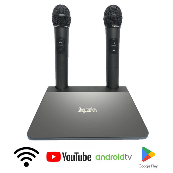 SingMasters SM-900 PRO Korean Edition is the latest Next Generation portable Android TV Smart Karaoke Multimedia system with exclusive features like builtin Wi-Fi 6,YouTube Karaoke singing,Voice Search,Google Playstore,Airmouse remote control with keyboard,Dual Live Scoring, Easy audio/video Recording,OTA update and many more. It comes with 2 wireless mics paired with the unit and a 32GB SD card boasting the largest ever collection of 8364 Korean and 10k+ English songs & Unlimited YouTube Karaoke songs.